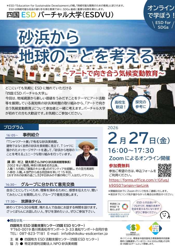 【参加者募集!】『砂浜から地球のことを考える~アートで向き合う気候変動教育~』(四国ESDバーチャル大学)開催のご案内